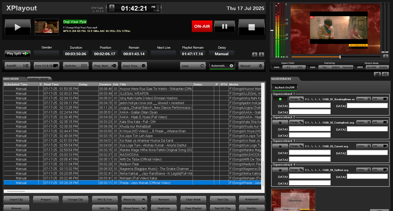 La prise en charge des E/S IP telles que NDI, SMPTE 2022 et SMPTE 2110 (avec des cartes vidéo spécifiques) transforme XTV Suite en un outil révolutionnaire. Les sources NDI et IP sont également prises en charge directement dans la playlist, permettant la diffusion des flux NDI, UDP, RTP, RTSP, RTMP et HTTP, ainsi que le réglage de paramètres spécifiques, tels que les modes de correction du format d’image, le recadrage vertical et horizontal pour minimiser l’effet letterbox à l’antenne, l’inversion de dominance de champ, etc.